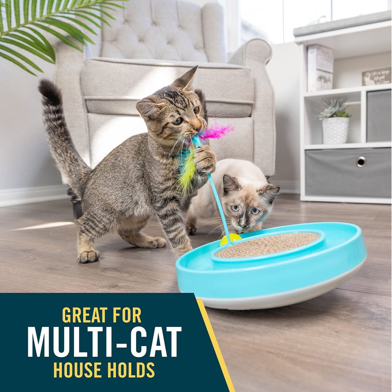 OurPets Wobble Scratch Track Cat Toy - Interactive Cat Toys for Indoor Cats with Cat Ball Track That Rolls, Feather Wand and Scratcher Pad. Great as a Kitten Toy for Self Play to Keep Them Busy
