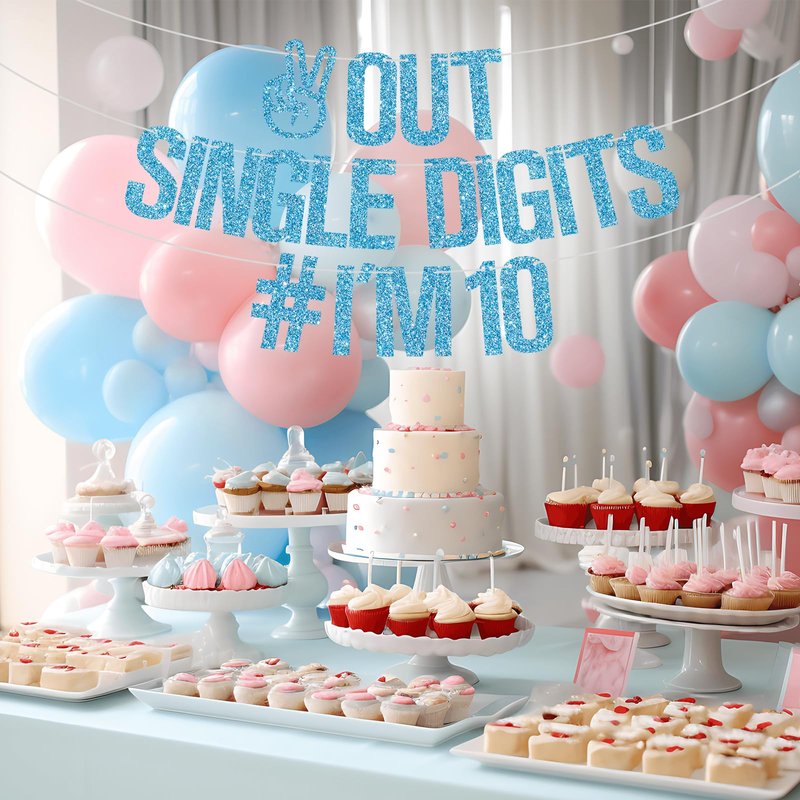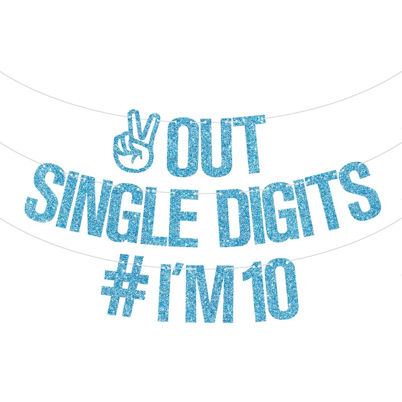 - Package includes: Baby Blue Glitter Out Single Digits I'm 10 Banner.