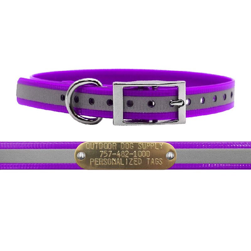 Outdoor Dog Supply's 3/4" Wide Reflective D Ring Dog Collar Strap with Custom Brass Name Plate … (Reflective Purple)
