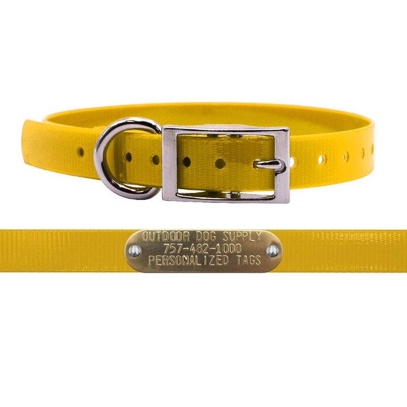 Outdoor Dog Supply's 3/4" Wide Solid D Ring Dog Collar Strap with Custom Brass Name Plate (School Bus Yellow)
