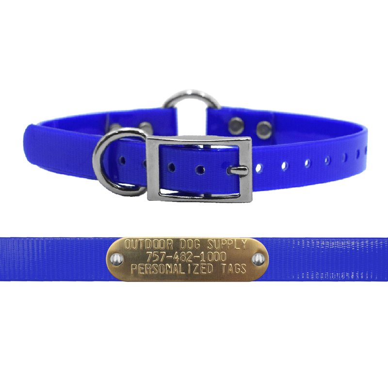 Outdoor Dog Supply's 3/4" Wide Solid Ring in Center Dog Collar Strap with Custom Brass Name Plate … (Blue)