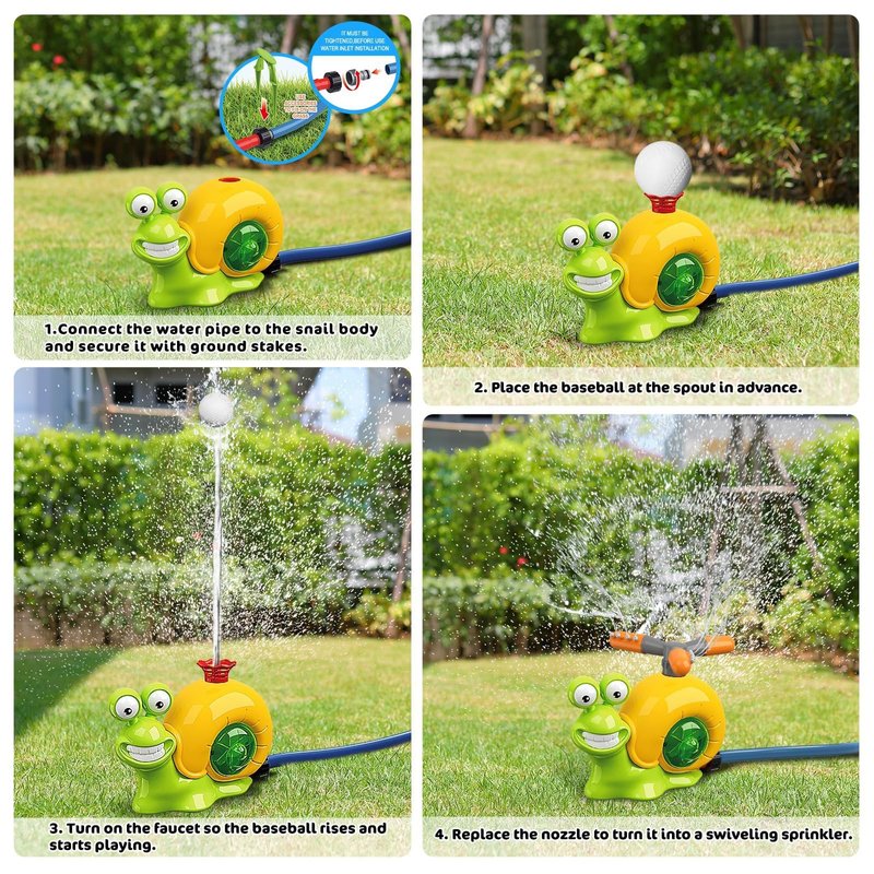 Outdoor Kids Lawn Garden Water Ball Sprinkler Baseball Toy, Snail 2 in 1 Outdoor Baseball Sprinkler with 3 Small Balls for Boys and Girls Over 3 Years Old, Summer Outdoor Water Ball Game. (Y8696-1)