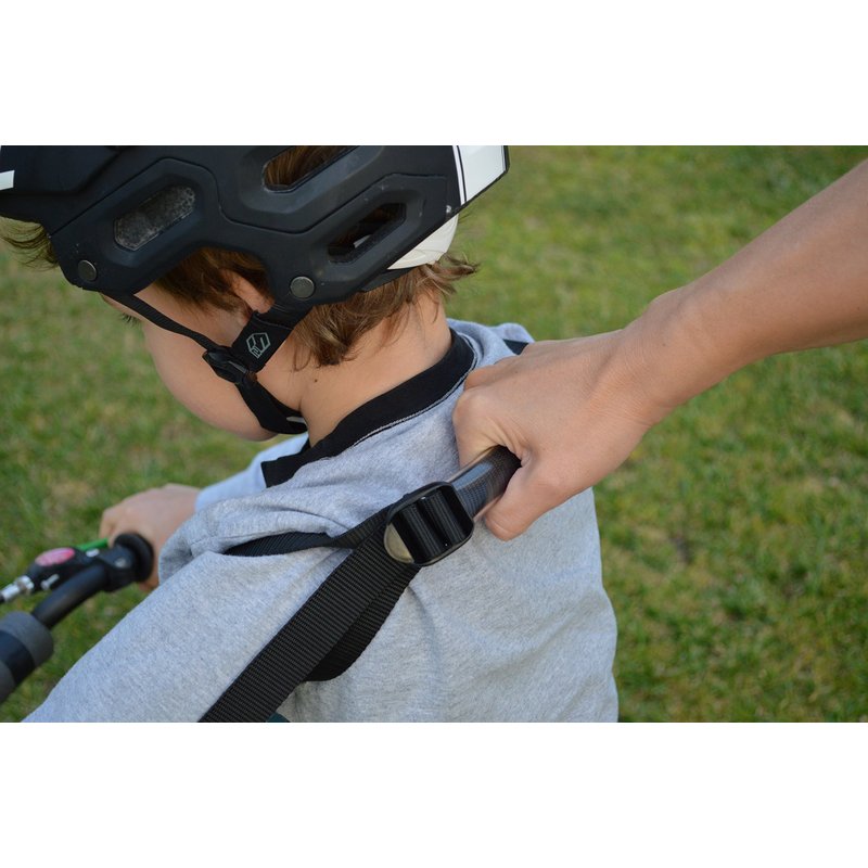 The First Ride Harness is specifically designed for the first few bicycle rides without training wheels or when transitioning from balance to pedal bike. It allows you to be by your child, ready to save her from falling, without killing your back and most importantly, instead of holding or pushing the child around you can let the child balance, and intervene only when she is about to bite the dust! Balance cannot be explained. Children need to find their balance by riding. With the First Ride Harness you can skip the scrapes and tears!