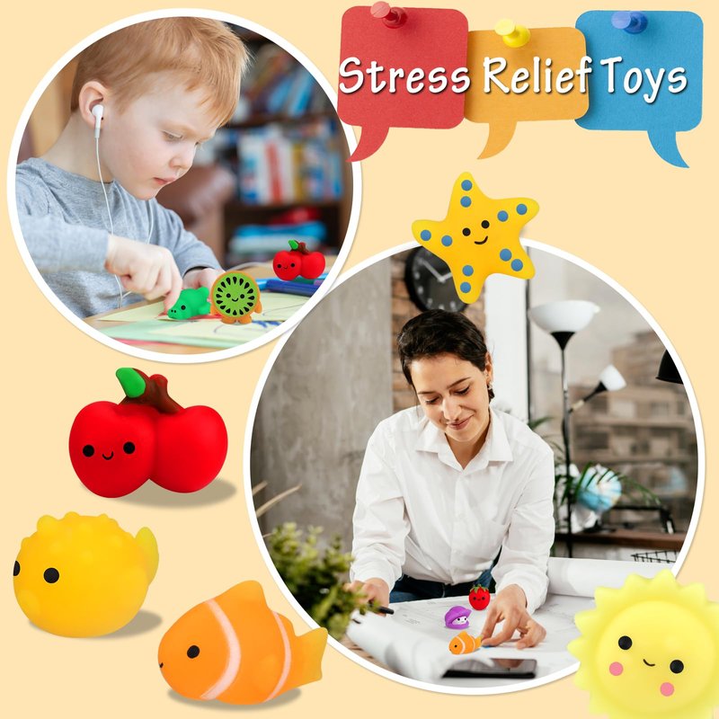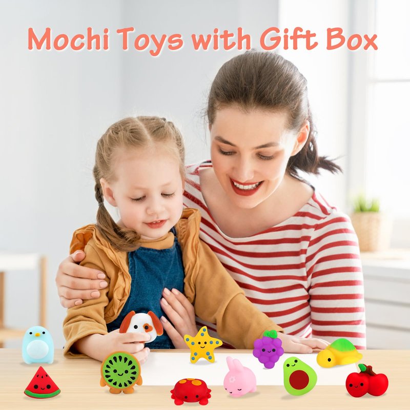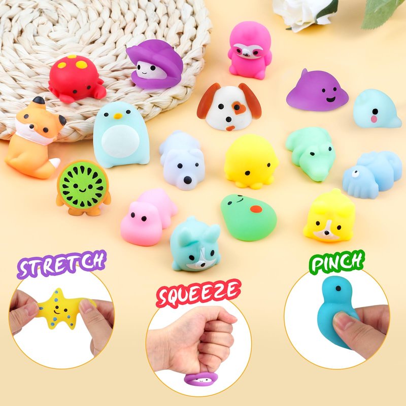 - CUTE MINI DESIGN - These mini toys stress relief toys come with cute design and bright color. The mini mochi toys are amazing soft. You can't stop pinching them because of the great touch feeling. These mini toys stress toys for kids adults can help to relieve stress and increase blood circulation of hands.