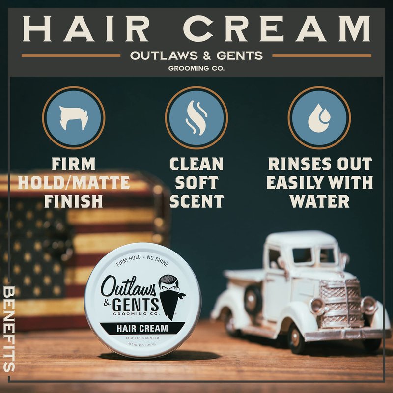 Outlaws & Gents Grooming Co. Hair Cream - Styling Cream for Men with Firm Hold and Matte Finish - Perfect for Daily Use and All Hair Types