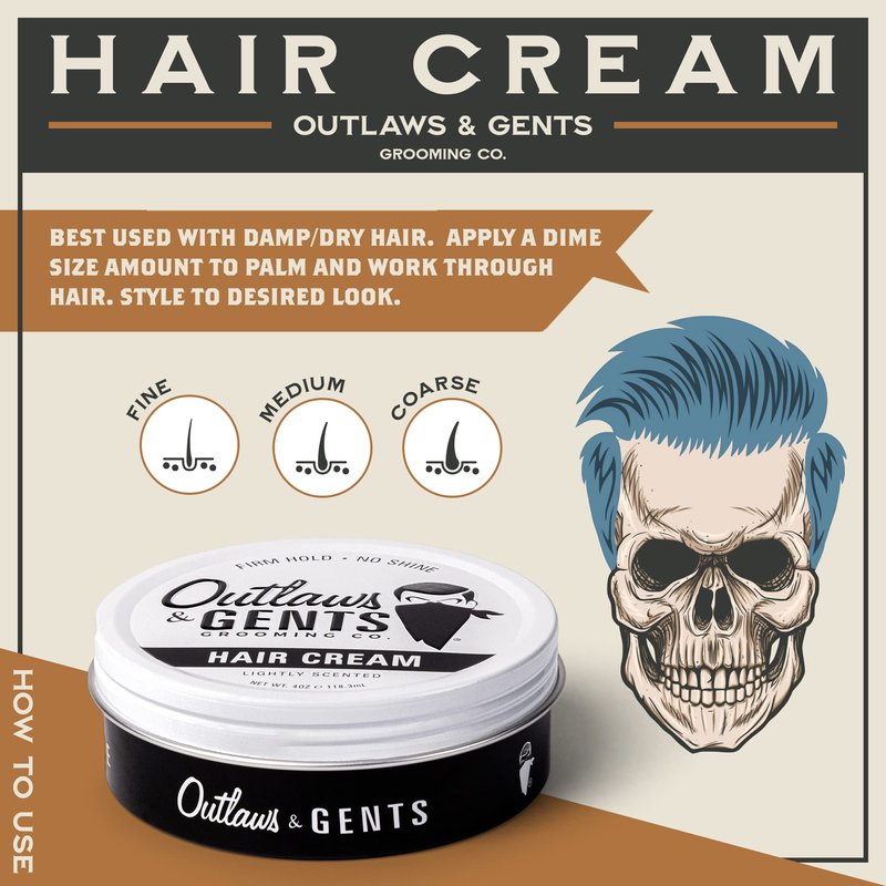 - PREMIUM INGREDIENTS: Outlaws & Gents Grooming Co. Hair Cream is made with the highest-quality ingredients to ensure optimal results and nourishment for your hair.