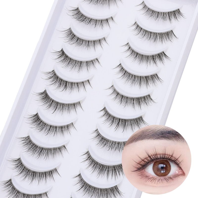 outopen 10 Pairs Clear Band Manga Lashes Natural Look 12MM Anime Lashes Spiky Japanese Korean Asian False Eyelashes Look Like Individual Clusters