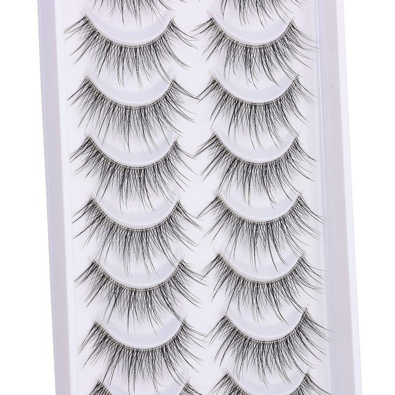 outopen 10 Pairs Clear Band Manga Lashes Natural Look 12MM Anime Lashes Spiky Japanese Korean Asian False Eyelashes Look Like Individual Clusters