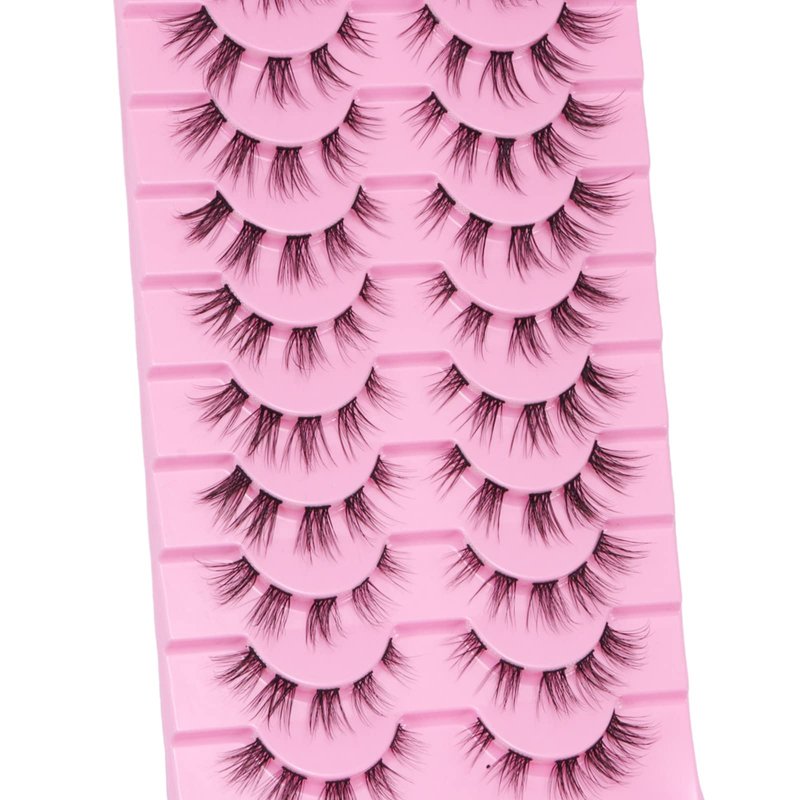 outopen 10 Pairs Cluster Lashes Natural Look Manga Lash Clusters C Curl Wispy Individual Eyelashes Cat Eye Lashes DIY Eyelash Extensions