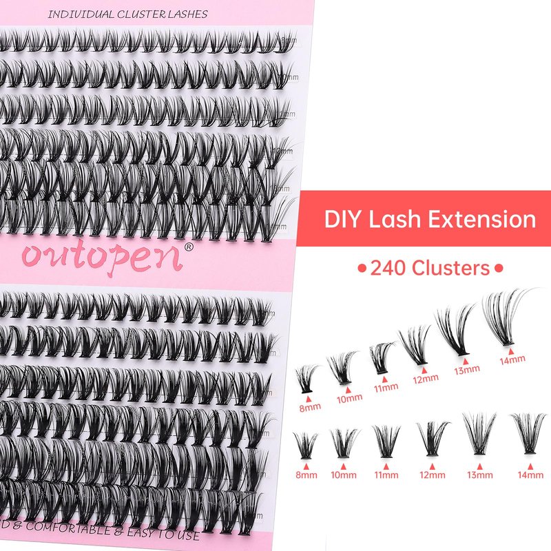 outopen DIY Lash Extension Kit Eyelash Extension Kit, 240pcs 9-16mm Mix Individual Lashes Cluster Kit with Lash Bond and Seal Glue, Lash Remover, Lash Applicator