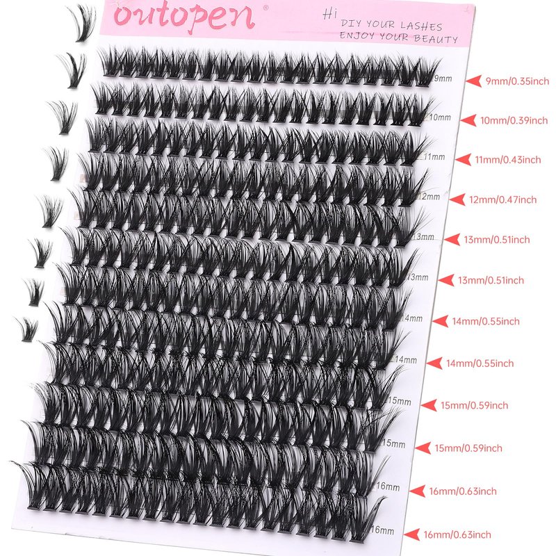 outopen DIY Lash Extension Kit Eyelash Extension Kit, 240pcs 9-16mm Mix Individual Lashes Cluster Kit with Lash Bond and Seal Glue, Lash Remover, Lash Applicator