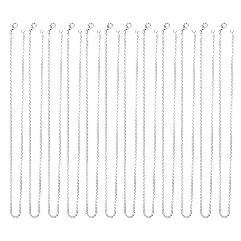 Outus 12 Pack Iron DIY Chain Necklaces Lobster Clasp Link Chain Necklaces Silver Plated (18 Inch)