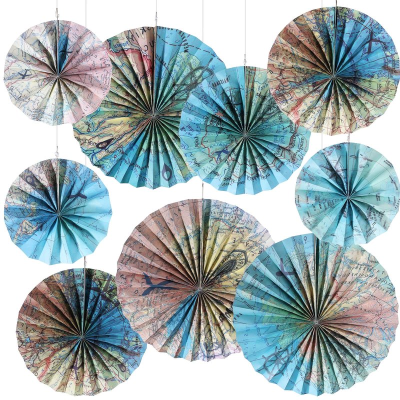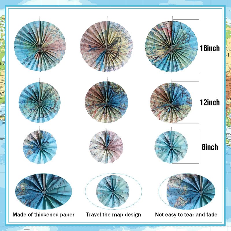- Quality Material: our travel the map globes paper fans are made of thickened paper, not easy to tear and fade, showing a three dimensional shape to create a sense of space for your travel party decorations