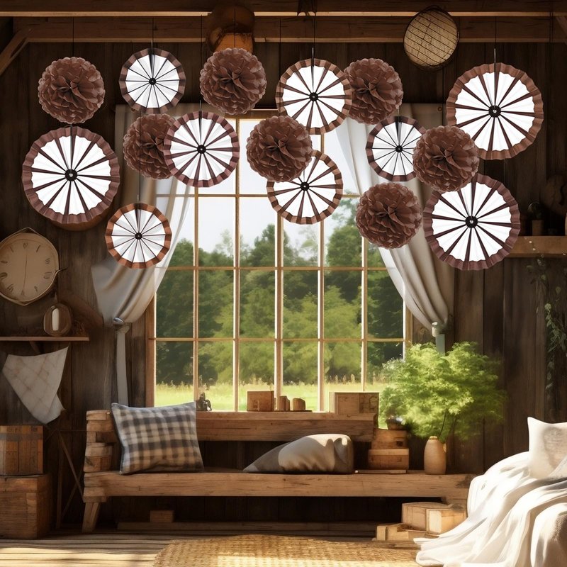 - What You Get: you will receive 21 pcs wild western hanging decorations, including 9 pcs wagon wheels paper fans and 12 pcs brown tissue pom poms, sufficient quantity and various sizes, can hang together for a visual display, bright up your western party