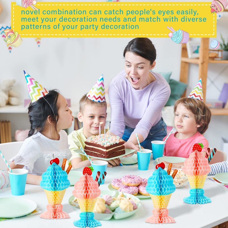- Amount of packaging: you will get 8 pieces tissue ice cream honeycomb table centerpieces in 2 styles, each style accounts for 4 pieces, novel combination can catch people's eyes easily, meet your decoration needs and match with diverse patterns of your party decoration