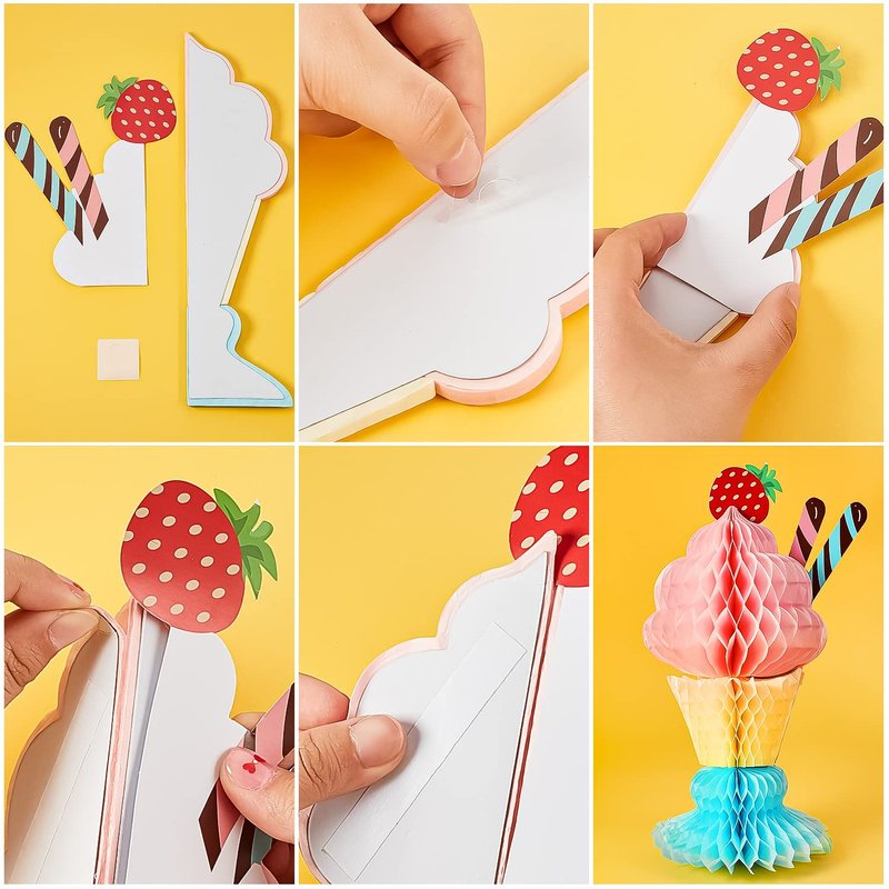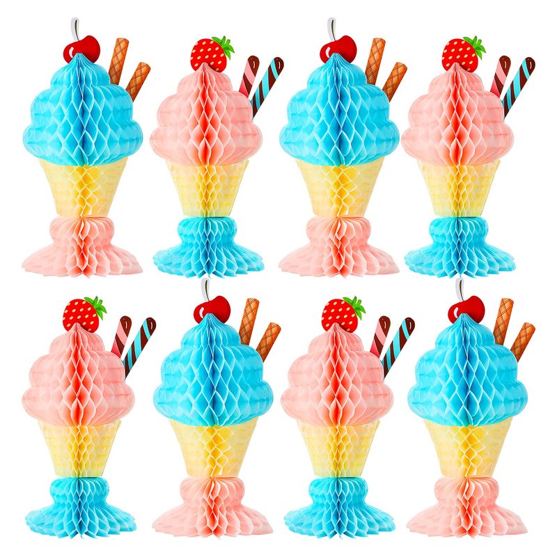Outus 8 Pcs Tissue Ice Cream Honeycomb Sundae Table Centerpiece Ice Cream Party Decorations for 50s Themed Ice Cream Sundae Theme Party Supplies