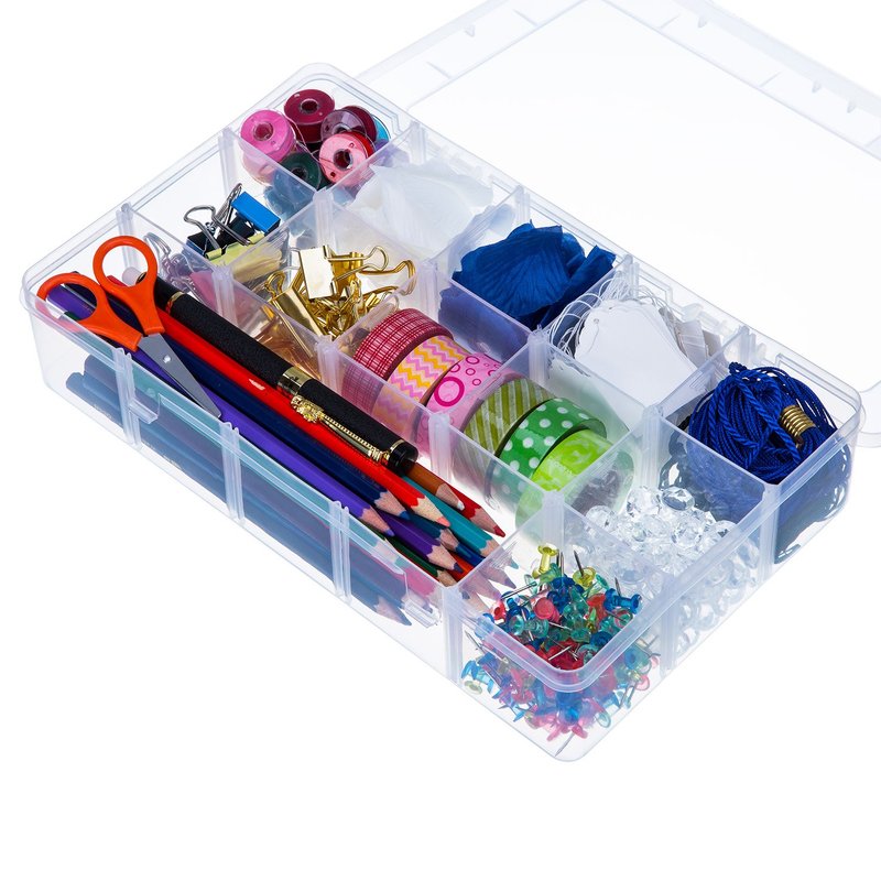 Quantity: 1 piece storage box (15 compartments, includes 2 large removable dividers and 12 small removable dividers)