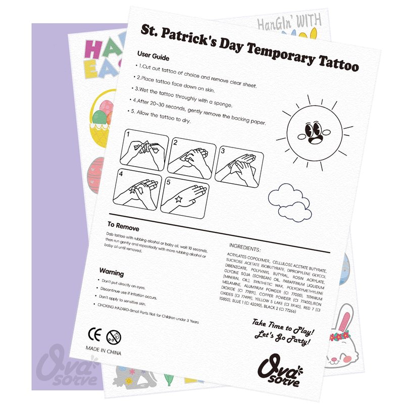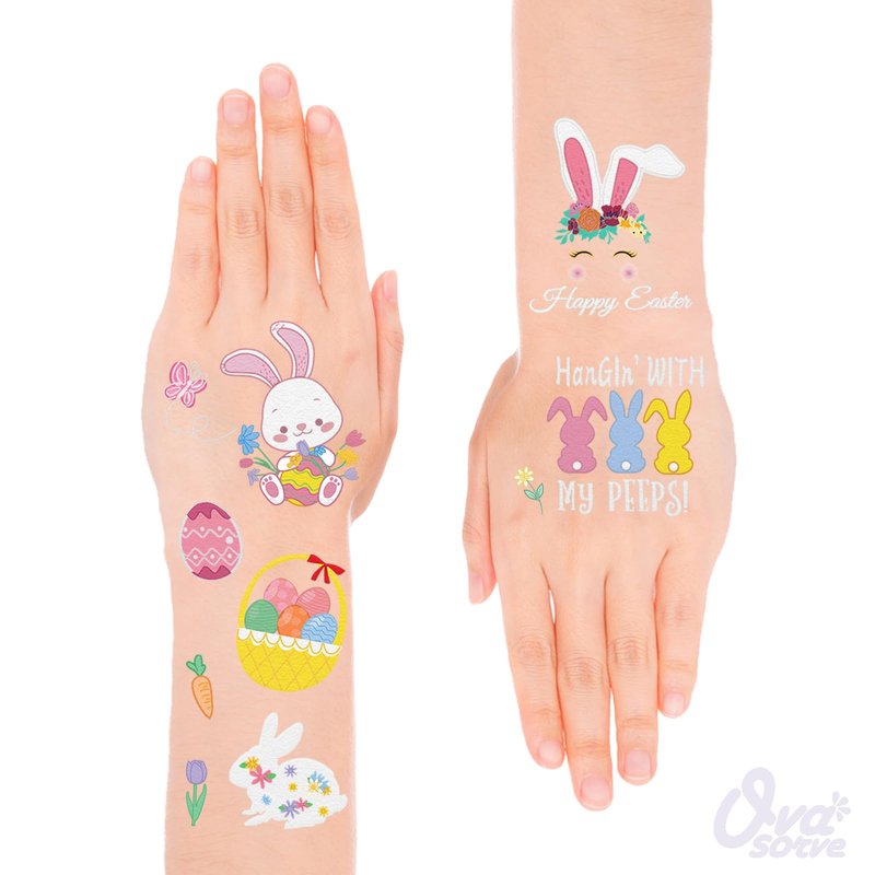 - Happy Easter! Give the children a surprise! Our Easter tattoos are perfect for stuffing candy bags at parties and can also be used as party decorations to make your Easter special! Everyone will find joy in it.