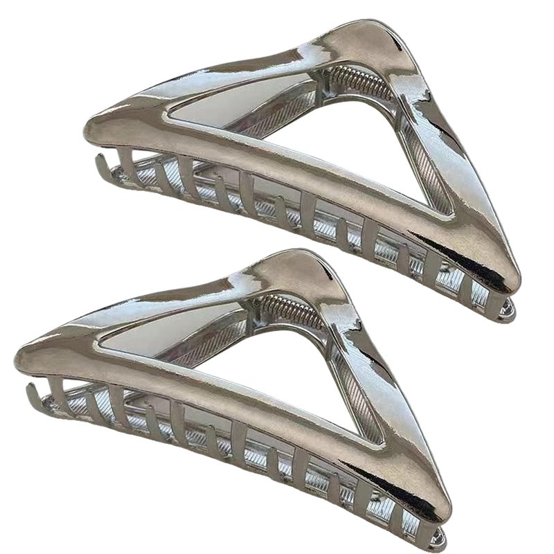 Ovche 2 Pack Triangle Metal Claw Hair Clips No Slippage Stylish Clamp with Teeth for Thick Hair Updo, Ideal for Bath, SPA, Washing, Makeup (Silver)
