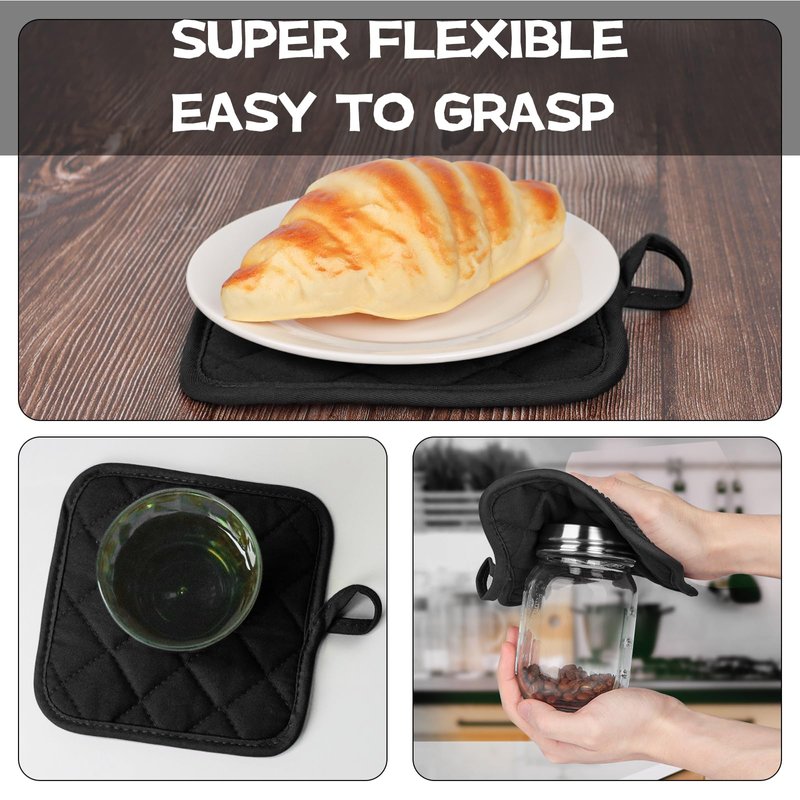 - 4 PIECE GREAT VALUE HOUSEHOLD ESSENTIALS PACK: Super value for 4pcs short oven mitts and pot holders, including 2 oven mitts(6.8 x 5.3in) and 2 pot holders (6.6 x 6.6in), perfect for daily use and coordinate well with your house and kitchen.