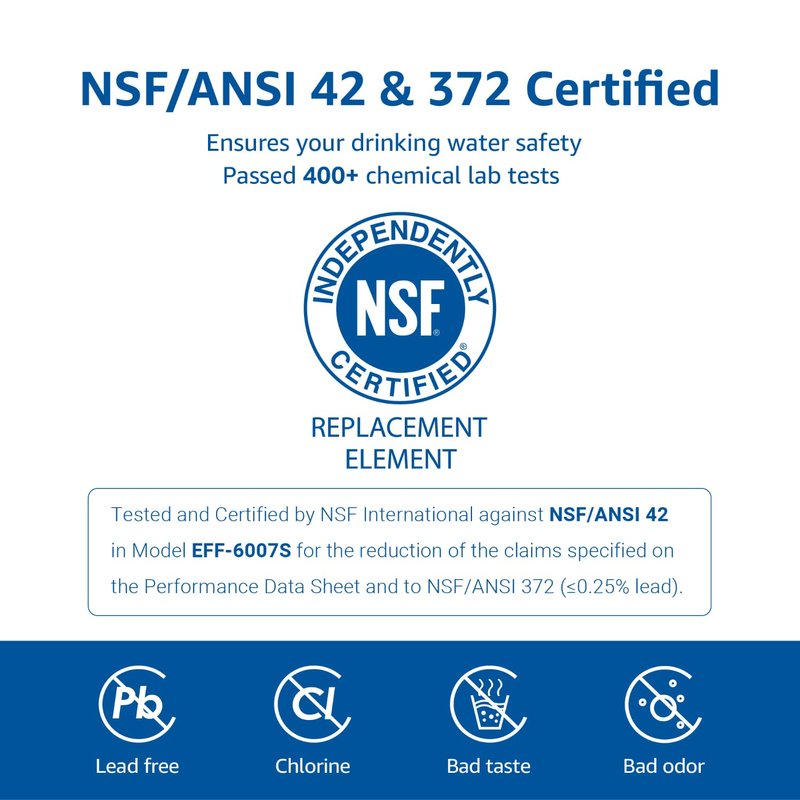 - [Superior materials] The Overbest replacement refrigerator filter for Everydrop Filter 4 is also NSF 372 certified to ensure lead-free materials. It is also BPA-free and adopts coconut shell carbon block to ensure healthy filtered water.