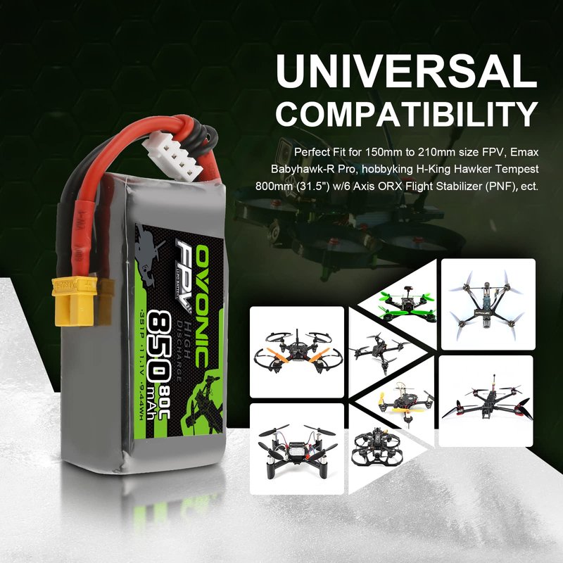 - 🔋Strong Compatibility - Compatible with RC Heli Airplane Quadcopter Helicopter Multi-Motor Hobby DIY Parts, 150mm to 210mm size FPV. For safety, please use the OVONIC dedicated charger to charge your battery. For more information, please search "OVONIC Mate 1" and "OVONIC X1" on Amazon.