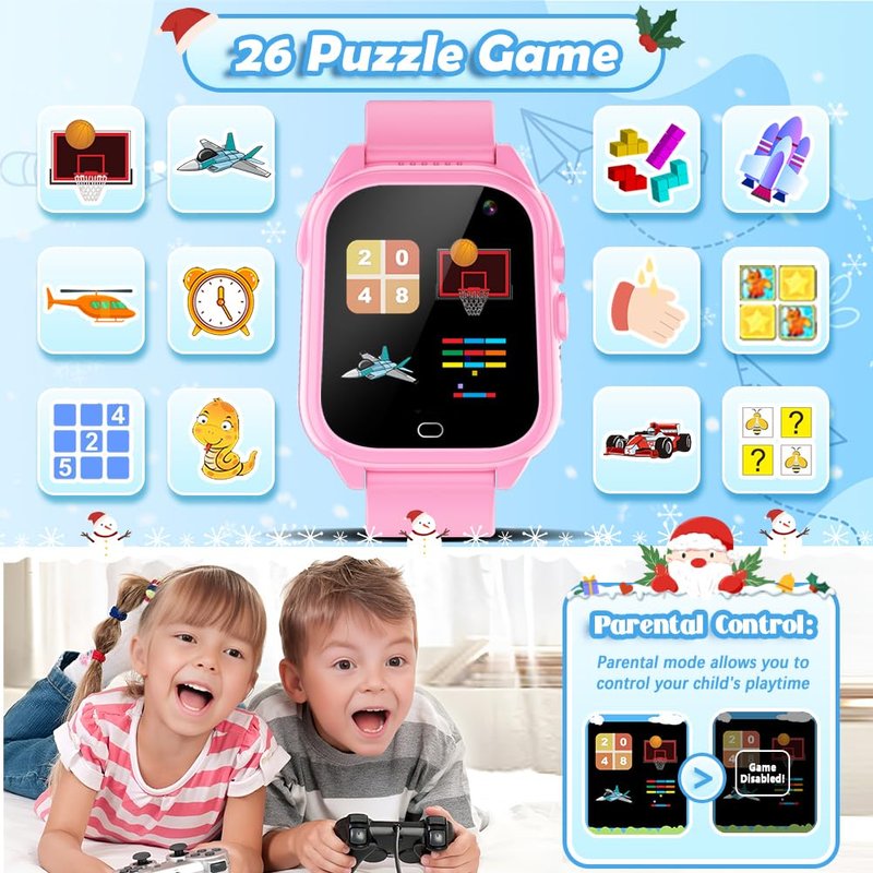 - Multifunctional kids puzzle watch: Including Camera(built-in photo stickers for funny photos ), Video, Health, Voice Recorder, Puzzle Games, Diy Wallpaper, Alarm, Time Teacher, Calculator, Flashlight, Music Player, etc. It is a great choice as a birthday and Christmas gift for 3-10 years old.