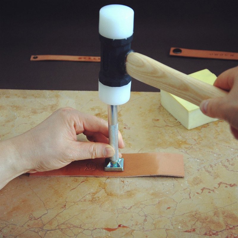 - Generally used for vegetable tanned leather with a thickness of more than 1.5mm, Wet the leather with a wet sponge before works,Then use the hammer to hit the end of the handle and control the power.