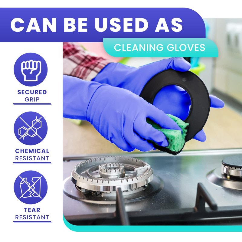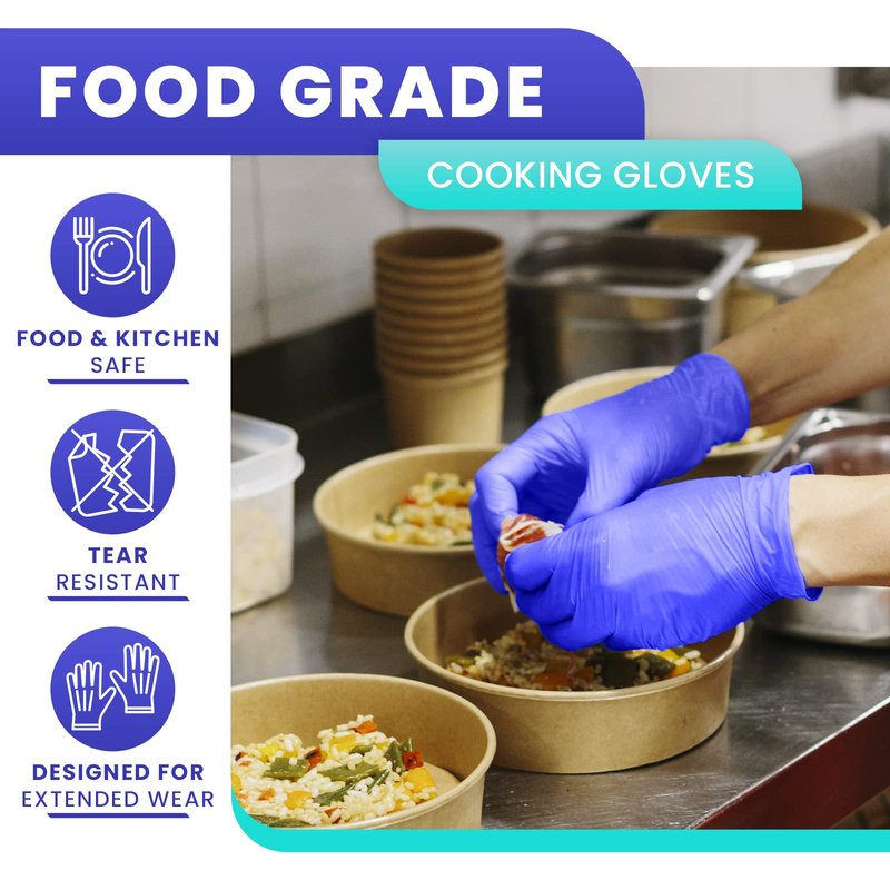 - FOOD & KITCHEN GLOVES: Are your current disposable cooking gloves food safe? Protect yourself and those around you from ingesting some of the harsh and toxic chemicals found in non-safe food prep gloves. Our medical-grade non latex food service gloves are not only chemical safe, but they are also tear and puncture-resistant, protecting your hands from transmitting food-related bacteria while handling raw & unprocessed foods.