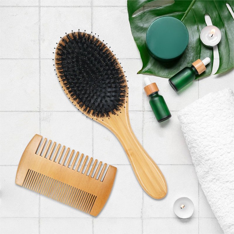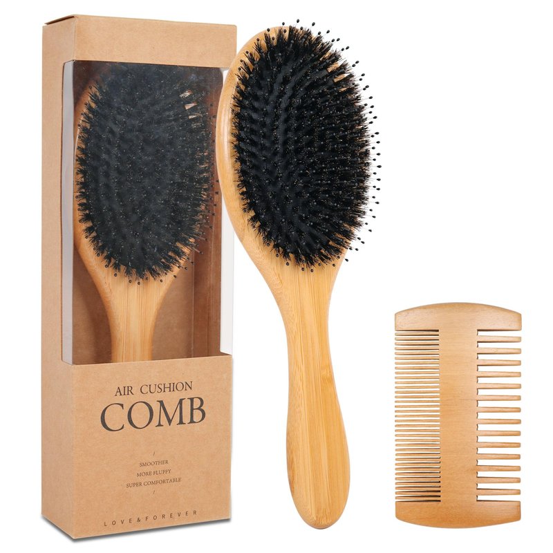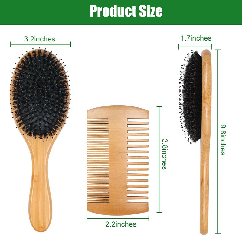 - Hair Brush Set:This hairbrush kit come with one bamboo boar bristle hair brush and one wooden double side hair comb.Suitable for a variety of your needs, better care for your hair.