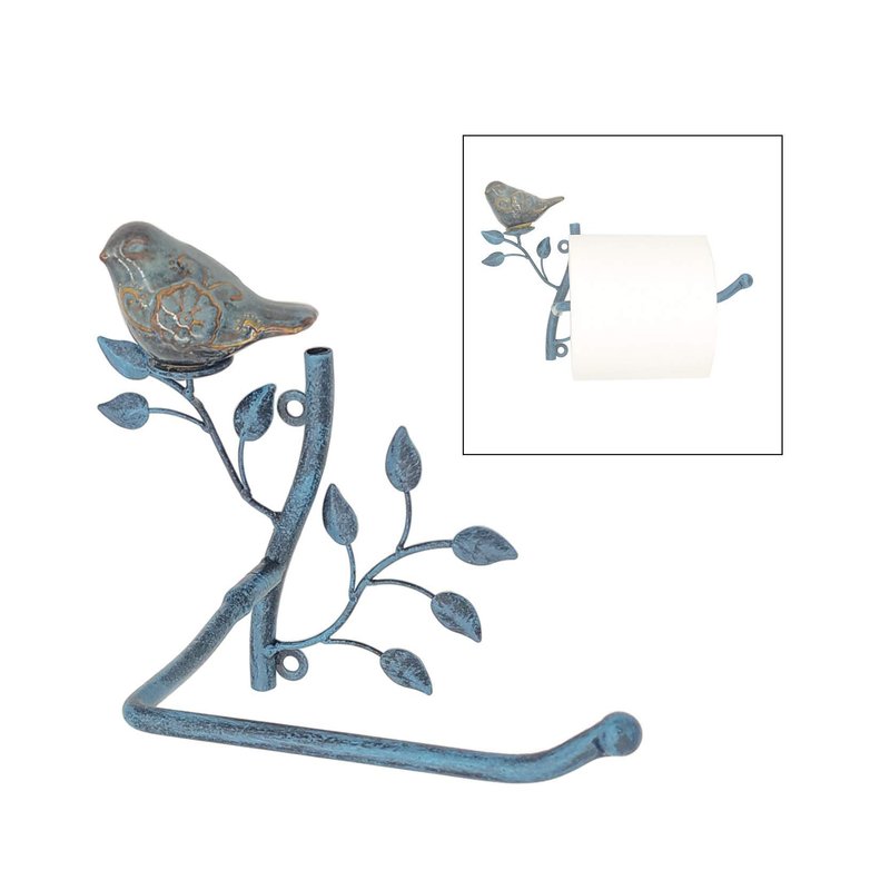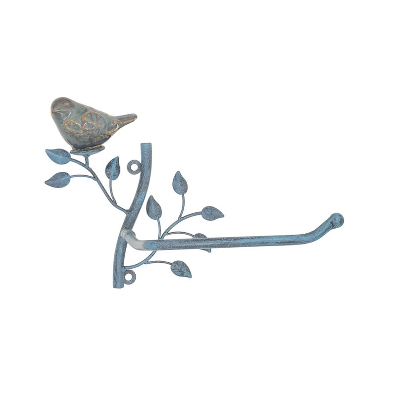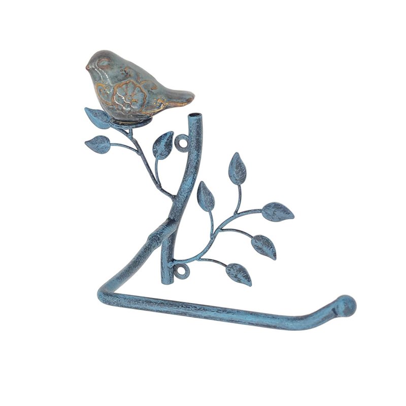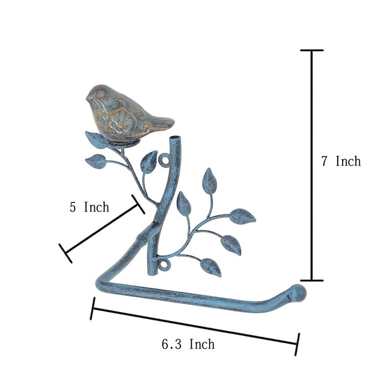 Owlgift Wall Mounted Metal Toilet Tissue Holder w/Ceramic Bird, Roll Organizer for Bathroom - Turquoise