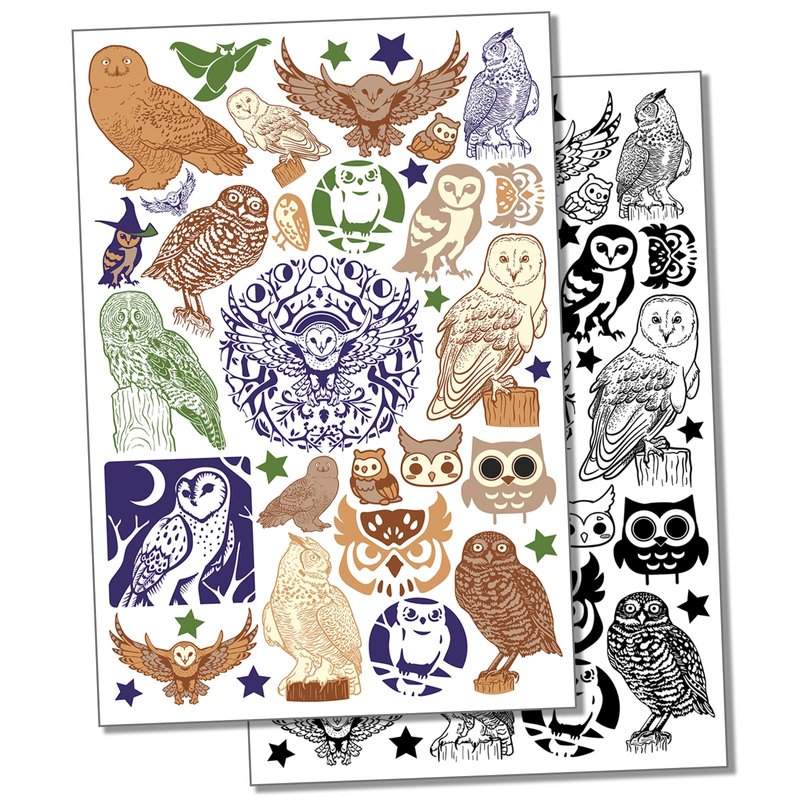 Owls Give a Hoot Temporary Tattoo Water Resistant Fake Body Art Set Collection - Color (One Sheet)