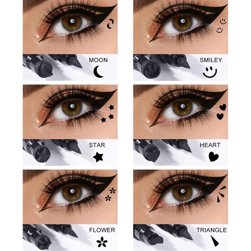 Ownest 6 Pcs Liquid Eyeliner Set,Double-Side Waterproof Smudge-proof Eyeliner Stamp Pen Eyeliner Tattoo Tool Makeup-Smiley, Triangle,Heart,Star,Moon,Flower