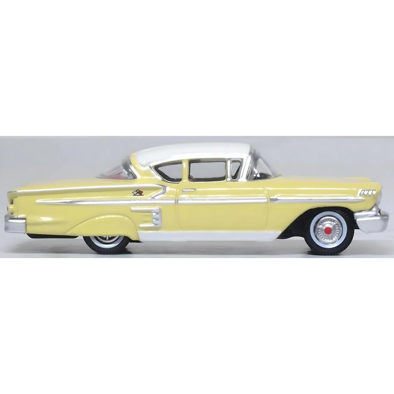 Oxford Diecast 1958 Chevy Impala Sport Colonial Cream with Snowcrest White Top 1/87 (HO) Scale Diecast Model Car 87CIS58002