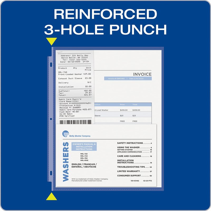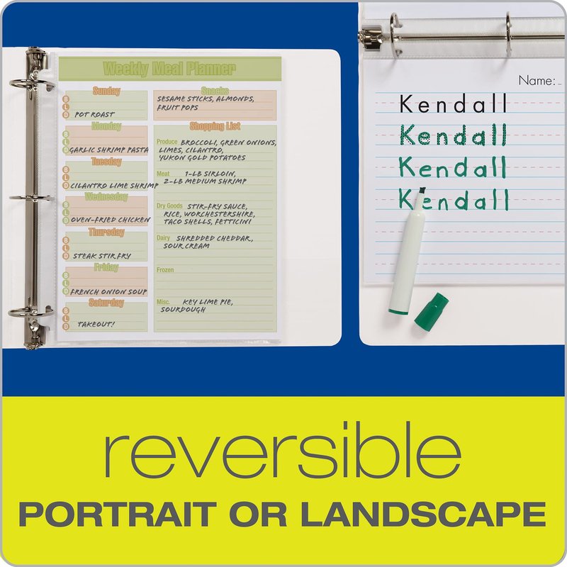 - Protect and store homework, office reports, recipes, manuals, sewing patterns; awards & vital records; also makes inexpensive & reusable dry erase pockets