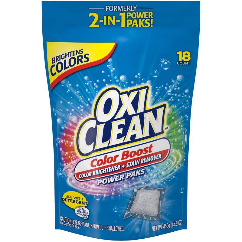 - One 18 count container of OxiClean Color Boost Color Brightener plus Stain Remover Power Paks