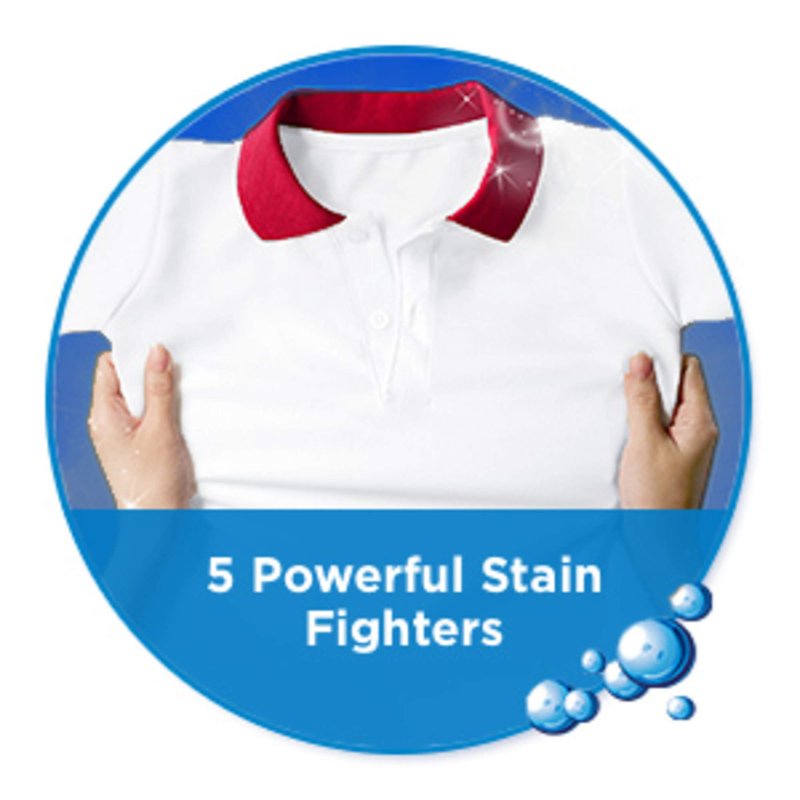 - 5 in 1 Power: Clothing stain remover combines 5 types of stain fighters to help you get out more of the toughest dried-in stains, including stains from food, grease, oil, dirt, grass, blood, ice cream and more