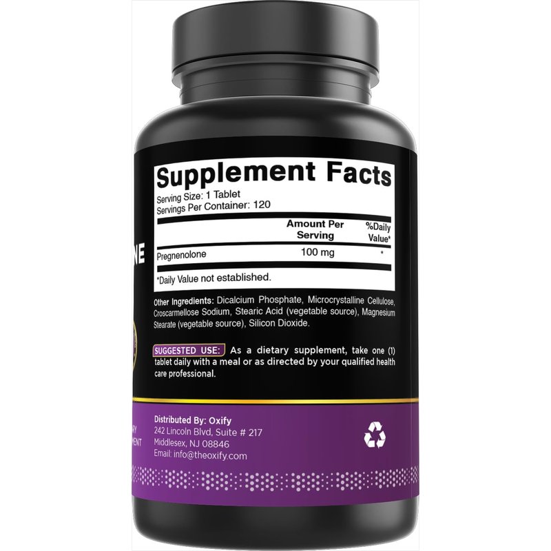 Oxify Pregnenolone 100 mg | 120 Tablets| Gluten-Free, Non-GMO | Supplement Made in USA