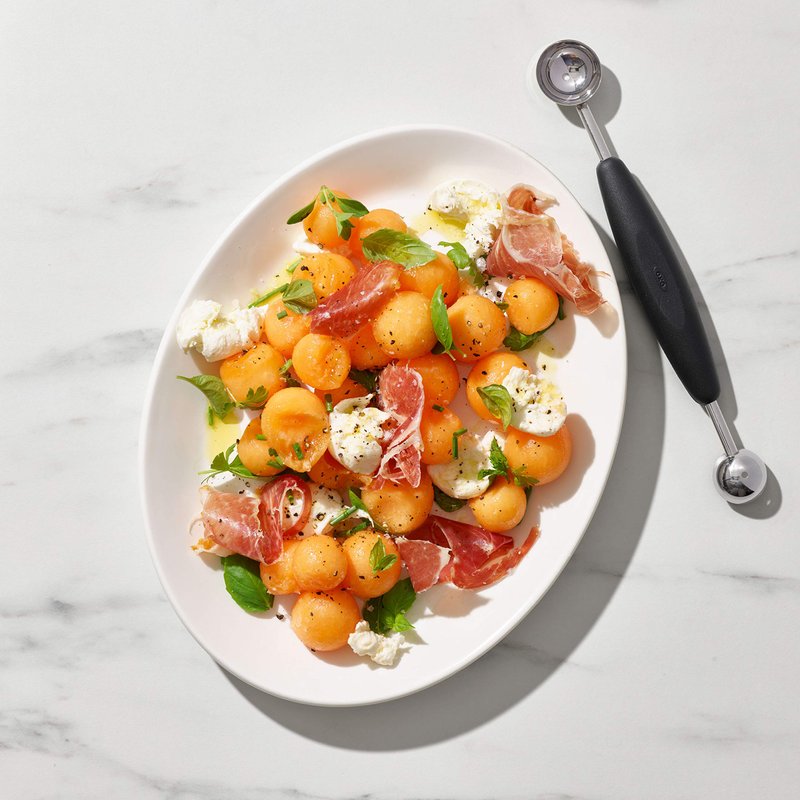 - Durable, double-sided stainless steel scoops are perfect for fruit and veggie prep