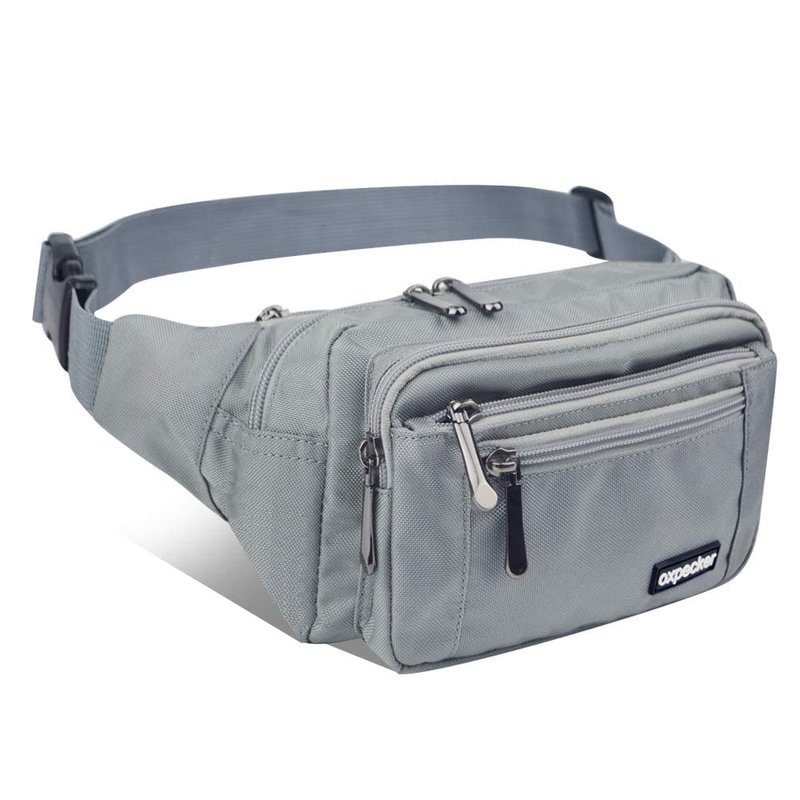 Oxpecker Waist Pack Bag with Rain Cover, Waterproof Fanny Pack for Men&Women, Workout Traveling Casual Running Hiking Cycling, Hip Bum Bag with Adjustable Strap for Outdoors (gray)