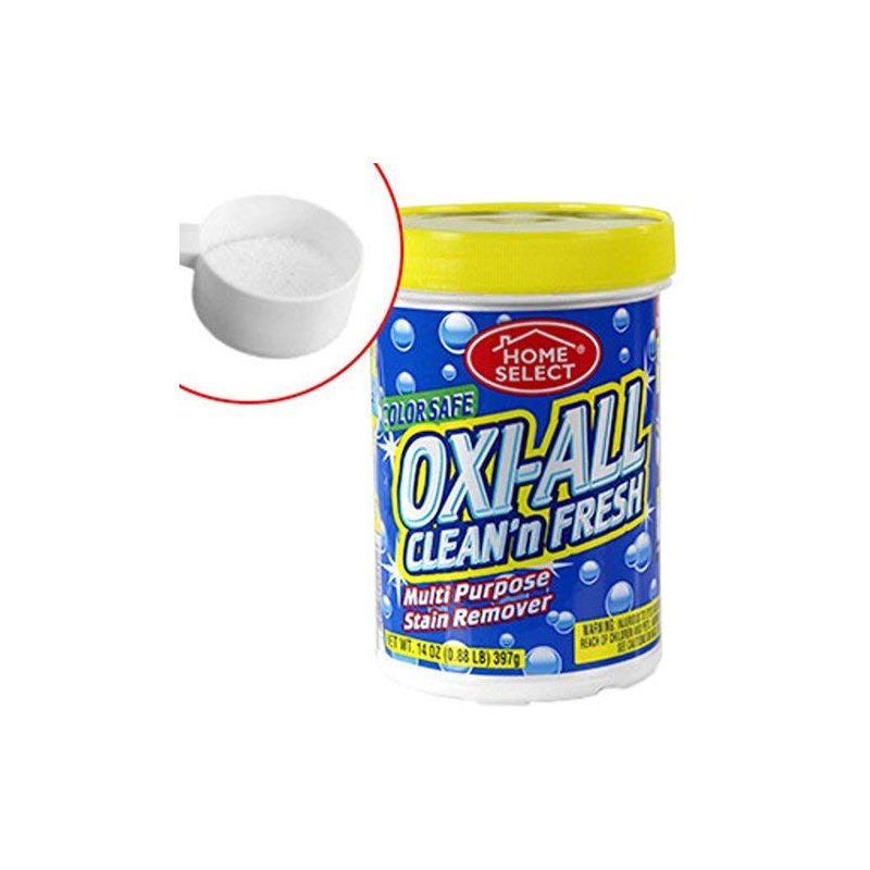 PowerHouse Oxi-All Multi Purpose Stain Remover may be used all around the house and outdoors. Removes stains and odors from laundry, carpet, furniture and much more. Removes stains caused by juice, wine, blood, food, blood, grass, pets and more. Use throughout the kitchen and the bathroom to clean tubs, tiles, floors, sinks, shower doors, and curtains. Use outdoors to clean decks, garbage cans, lawn furniture and more. Eliminate tough stains. Laundry. Carpet. Grease & grime. Prime value for your family! www.deltabrands.com. Made in China.