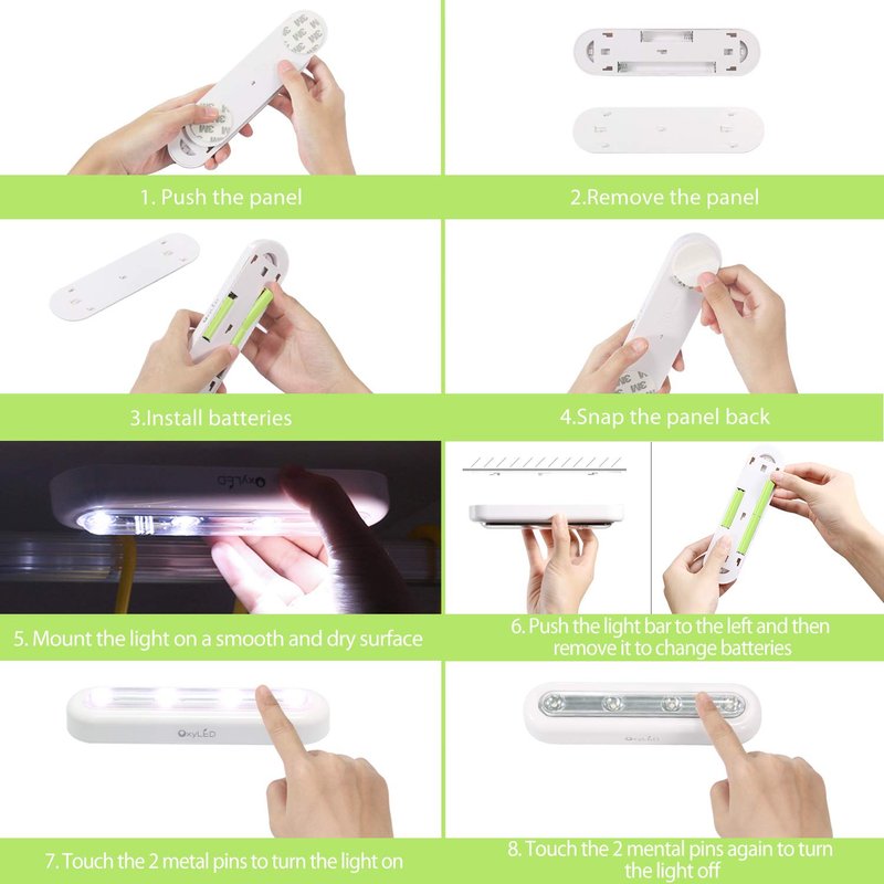 - SUPER-BRIGHT TAP LIGHTS W/ 140 DEGREE ROTATION: With 4 bright LEDs, each OxyLED T-01 touch sensor light outputs up to 80 lumens, which is bright enough to make sure you never stumble in the dark; Also, this touch-sensing light can be rotated back and forth by 70° , you can align the light in the direction you want