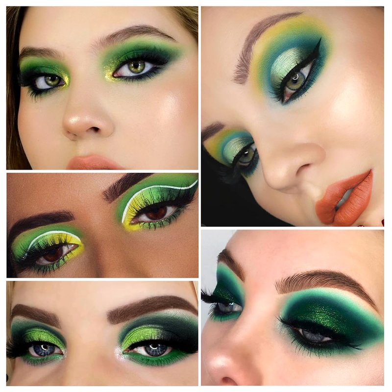 - ❤MOST COST-EFFECTIVE GREEN MAKEUP PALETTES ;The 25 colors green eye shadows palette contains different greens shades,including lime green,olive green,emerald green,forest green,true green,yellow green,dark green,brown green matte and shimmer,all green tone,you could mix them to come true.Of course,it is perfect to create Xmas grinch looks,also for special Halloween looks.