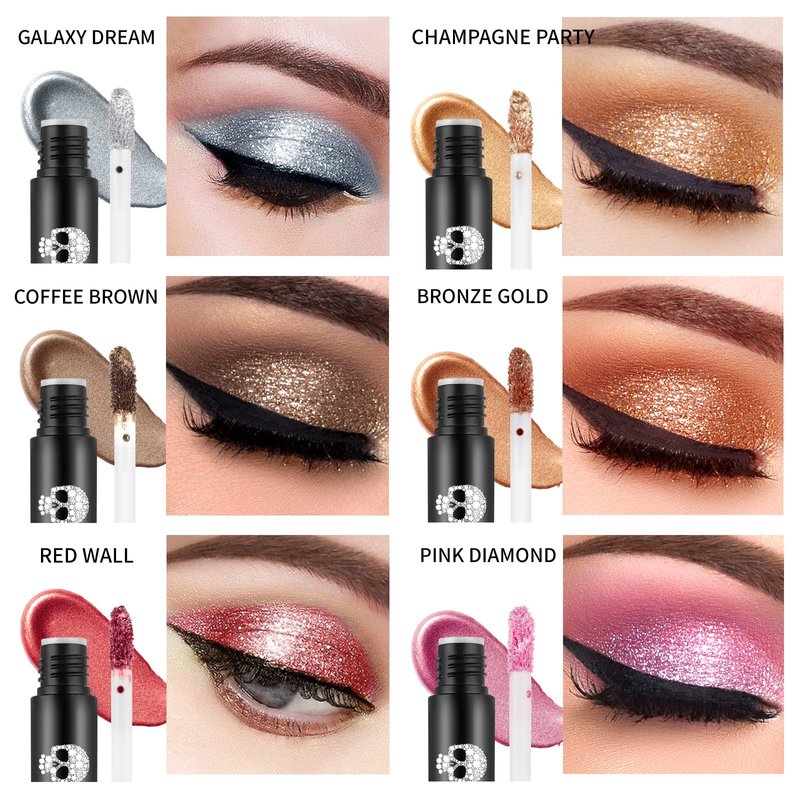 - Bold, High-Impact Glitter Eyeshadow: Create captivating, bold eye looks with this Shimmer Liquid Eyeshadow. Packed with intense pigmentation, this eyeshadow delivers a high-impact, glittery finish that catches the light from every angle. Whether you're going for an edgy look or a glamorous evening style, this eyeshadow ensures your eyes make a statement with its stunning metallic glitter effect.