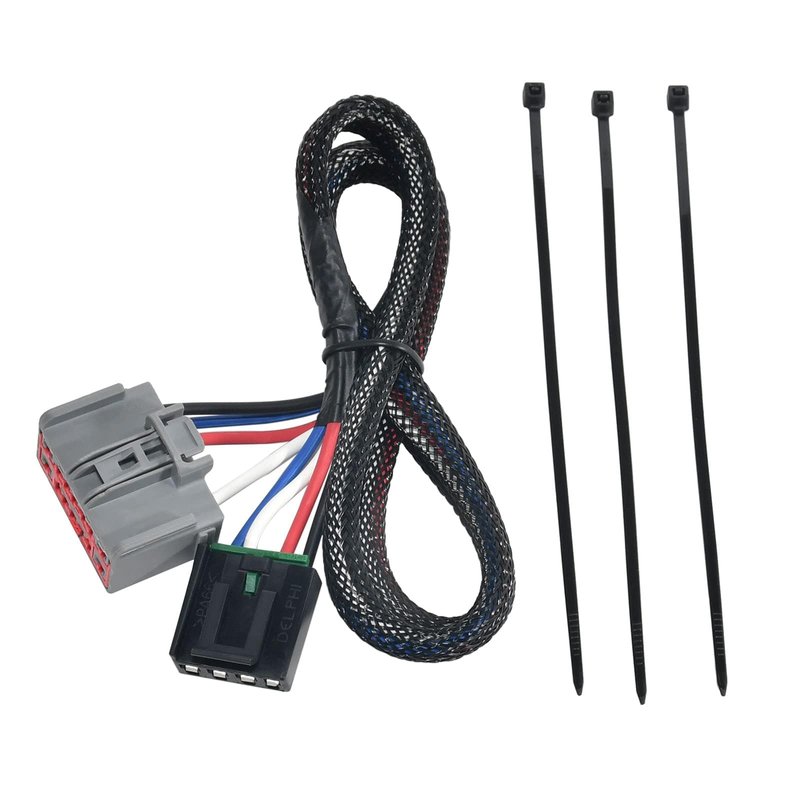 Install your electric brake controller quickly and easily with this vehicle-specific wiring adapter; This adapter plugs into the custom connector on your vehicle's built-in brake control wiring harness, the harness is located underneath the dash, other end plugs into the back of your electric brake controller.
