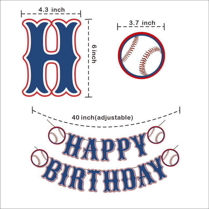 - PACKAGE INCLUDED : A set of Baseball-themed birthday banners (HAPPY BIRTHDAY+4 baseballs), A 9.8' jute cord of with a complimentary plastic needle (for fast threading)