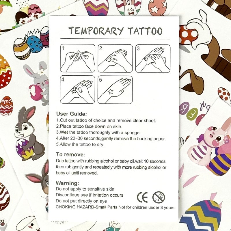- Crafted from safe and waterproof paper, these tattoos are designed to last, with effects that can persist for 3-5 days. Their durability ensures long-lasting enjoyment, making them perfect for extended Easter celebrations and various occasions.