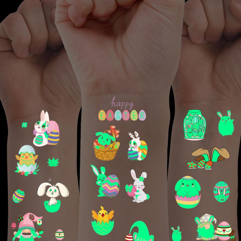 - Ideal for Easter basket stuffers, party favors, decorations, and more, these luminous temporary tattoos promise to be a highlight of your Easter celebration. Make this Easter memorable with the enchanting and playful touch of our glow-in-the-dark temporary tattoos.