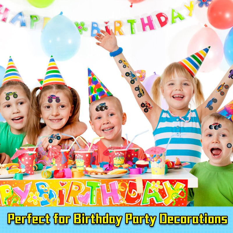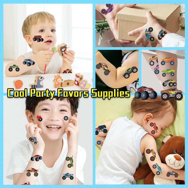 - 🛻 10 Sheets of Monster Truck Party Accessories: This set includes over 75 unique tattoo designs, featuring both cool and cute cartoon styles. Enhance any children’s party or event with these fun-filled tattoos.