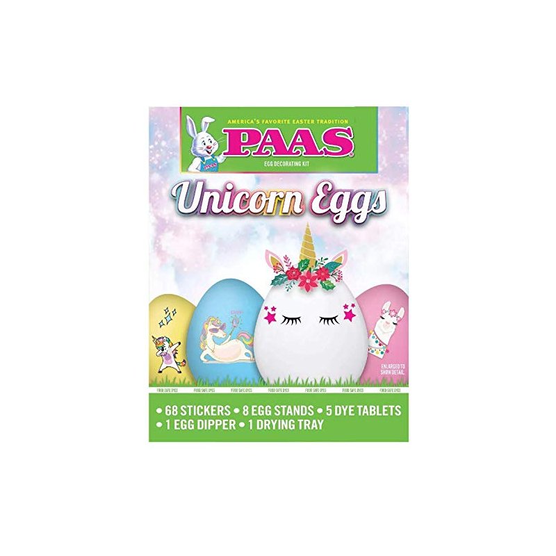 PAAS Unicorn Eggs - Easter Egg Decorating Kit - 68 Stickers, 8 Egg Stands, 5 Dye Tablets, and More
